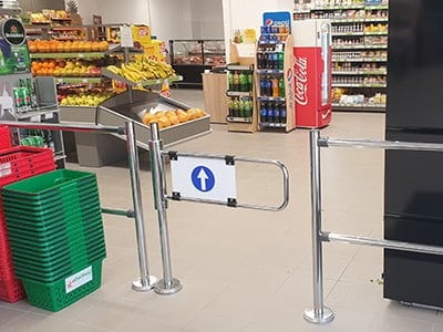 Gestionarea fluxului de intrare a clientilor in magazin prin intermediul unor porţi mecanice rotative, simple sau duble se foloseste din motive de securitate, si ofera posibilitatea de urmărire a eventualelor probleme din interiorul magazinului.